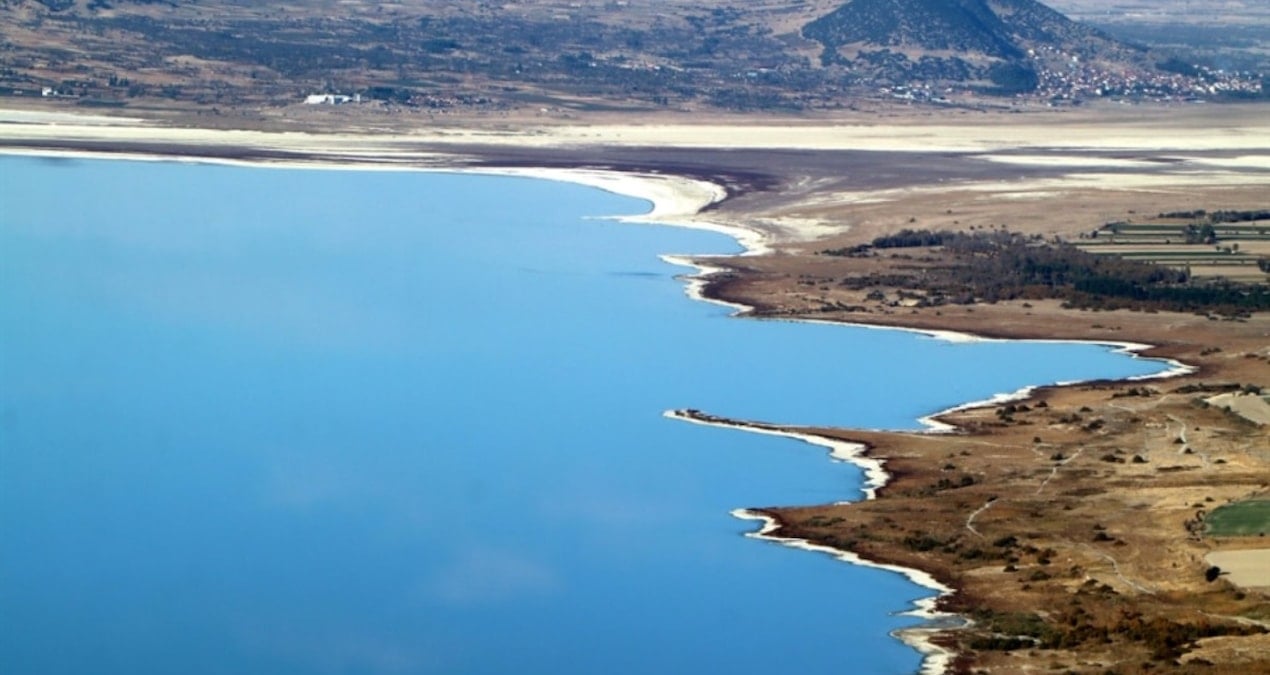 55 yılda 21,3 metre çekilen Burdur Gölü havadan görüntülendi
