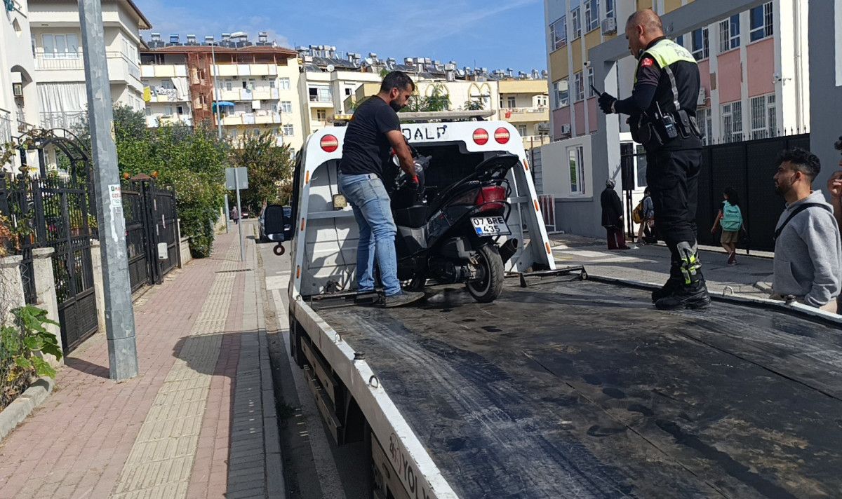 Antalya Manavgat Emniyet Müdürlüğü Trafik Denetleme Büro Amirliği’ne bağlı Yunus timleri, 75. Yıl İlköğretim Okulu yönetiminin tehlike arz eden motosiklete yönelik ihbarı üzerine harekete geçti.