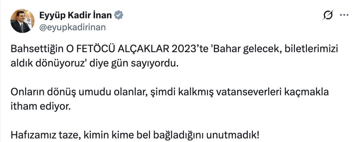 “Bahsettiğin o FETÖ’cü alçaklar 2023’te ‘Bahar gelecek, biletlerimizi aldık dönüyoruz’ diye gün sayıyordu.