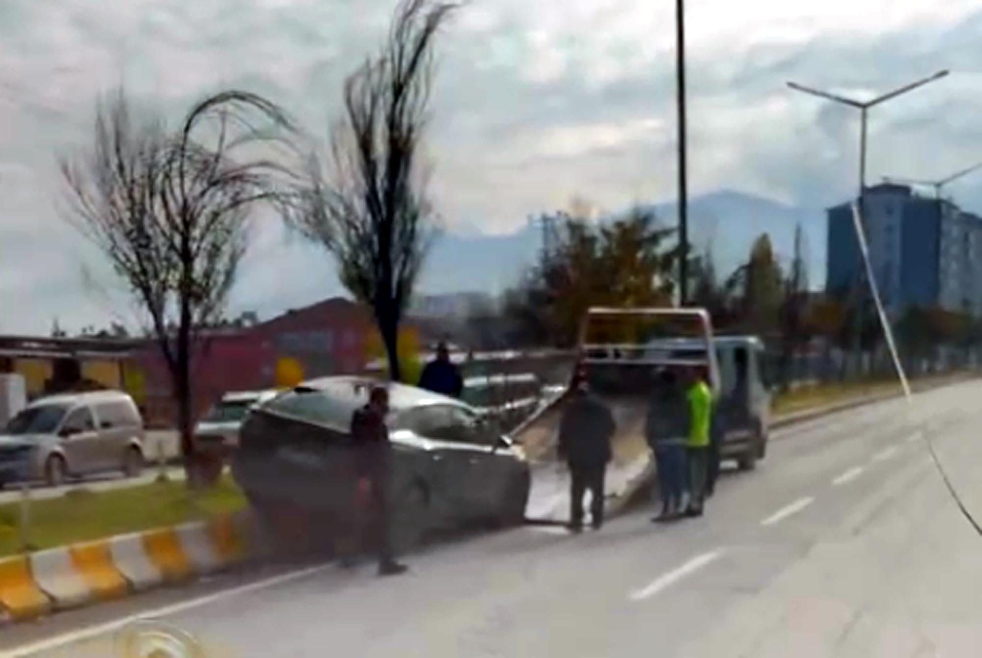 Çevredeki bir otomobil sürücüsü, cep telefonuyla kaza sonrası yaşananları kayıt altına aldı.
